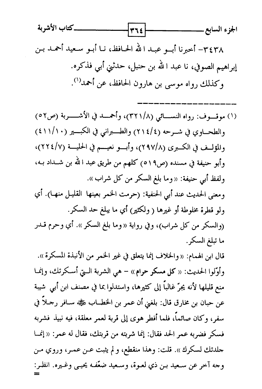3438 - أخبرنا أبو عبد الله الحافظ ، نا أبو سعيد ، أحمد بن إبراهيم الصوفي ، نا عبد الله بن حنبل ، حدثني أبي فذكره . وكذلك رواه موسى بن هارون الحافظ ، عن أحمد ( 1 ) .