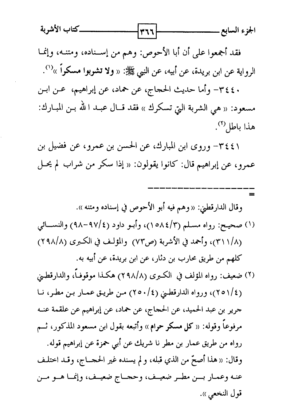 3440 - وأما حديث الحجاج ، عن حماد ، عن إبراهيم ، عن ابن مسعود : ( ( هي الشربة التي تسكرك ) ) فقد قال عبد الله بن المبارك : هذا باطل ( 2 ) .