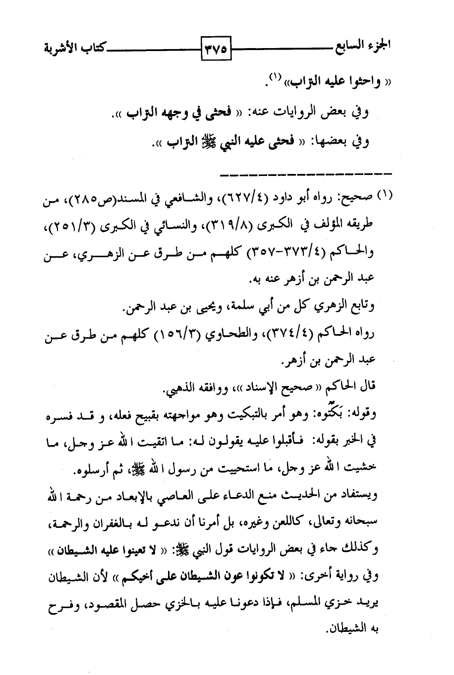 ( ( واحثوا عليه التراب ) ) ( 1 ) . وفي بعض الروايات عنه : ( ( فحثى في وجهه التراب ) ) . وفي بعضها : ( ( فحثى عليه النبي صلى الله عليه وسلم التراب ) ) .