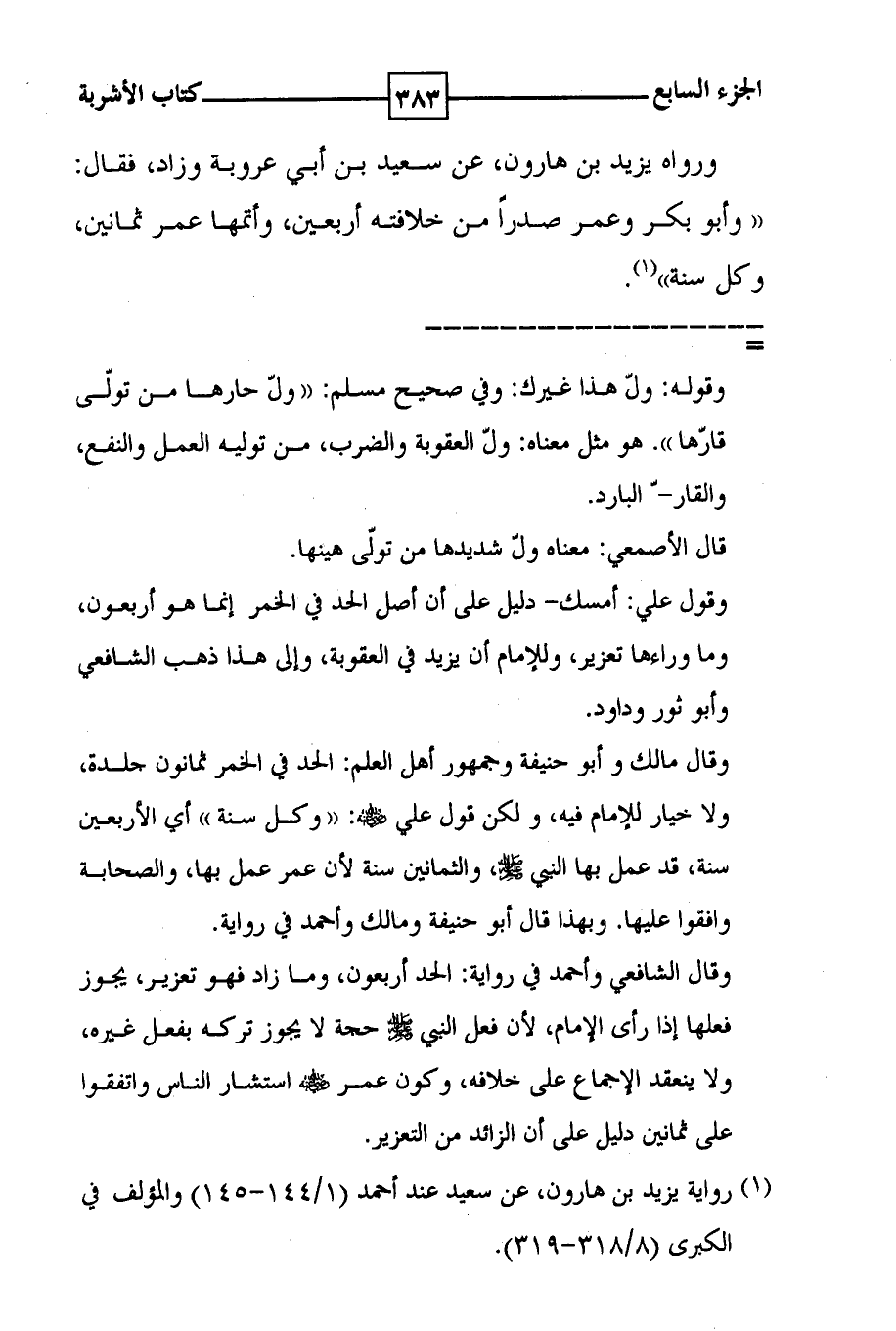ورواه يزيد بن هارون ، عن سعيد بن أبي عروبة وزاد ، فقال : ( ( وأبو بكر وعمر صدراً من خلافته أربعين ، وأتمها عمر ثمانين ، وكل سنة ) ) ( 1 ) .