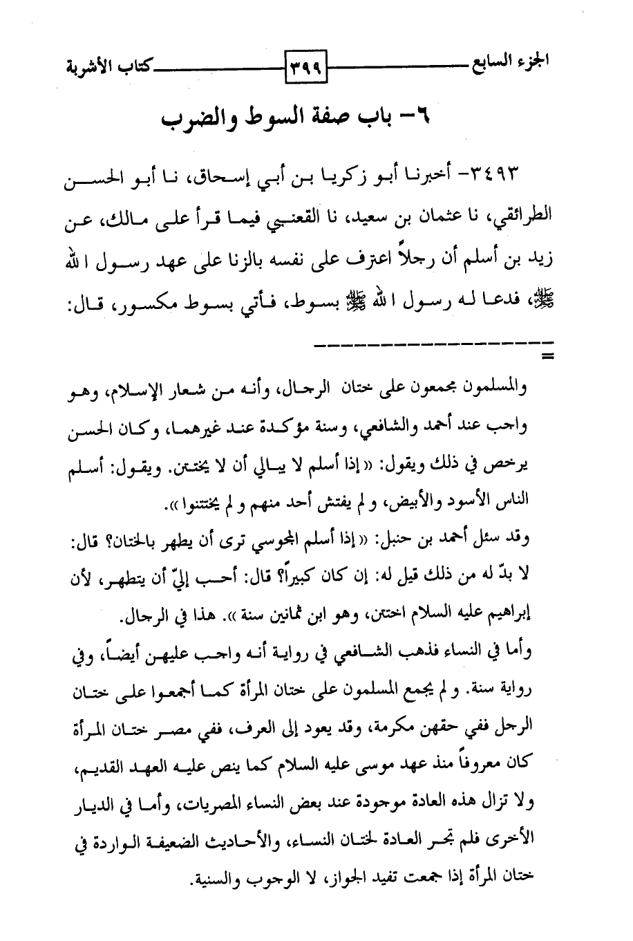 3493 - أخبرنا أبو زكريا بن أبي إسحاق ، نا أبو الحسن الطرائقي ، نا عثمان بن سعيد ، نا القعنبي فيما قرأ على مالك ، عن زيد بن أسلم أن رجلاً اعترف على نفسه بالزنا على عهد رسول الله صلى الله عليه وسلم ، فدعا له رسول الله صلى الله عليه وسلم بسوط ، فأتي بسوط مكسور ، قال :