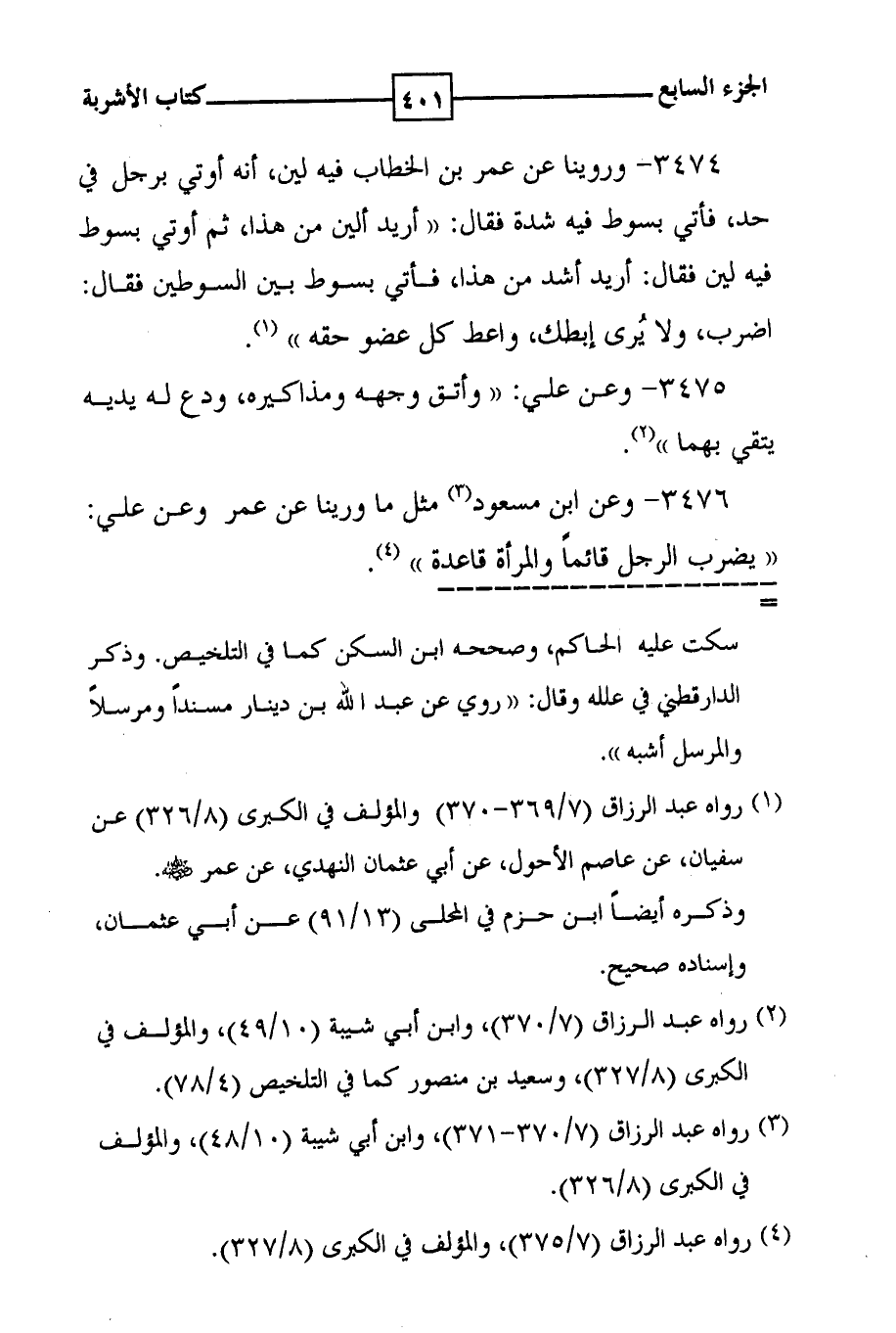 3476 - وعن ابن مسعود ( 3 ) مثل ما ورينا عن عمر وعن علي : ( ( يضرب الرجل قائماً والمرأة قاعدة ) ) ( 4 ) .