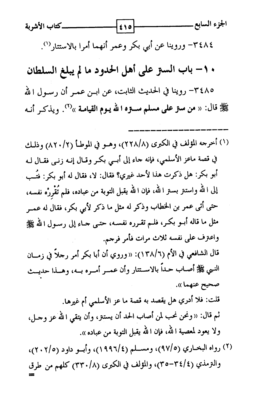 3484 - وروينا عن أبي بكر وعمر أنهما أمرأ بالاستتار ( 1 ) .
