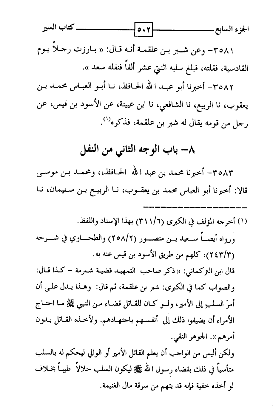 3582 - أخبرنا أبو عبد الله الحافظ ، نا أبو العباس محمد بن يعقوب ، نا الربيع ، نا الشافعي ، نا ابن عيينة ، عن الأسود بن قيس ، عن رجل من قومه يقال له شبر بن علقمة ، فذكره ( 1 ) . 8 - باب الوجه الثاني من النفل