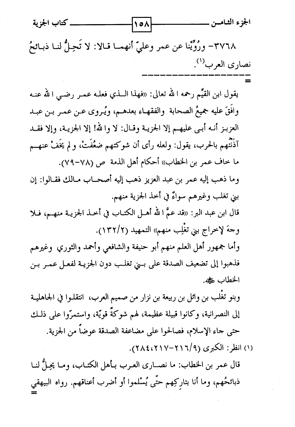3768 - وروينا عن عمر وعلي أنهما قالا : لا تحل لنا ذبائح نصارى العرب ( 1 ) .