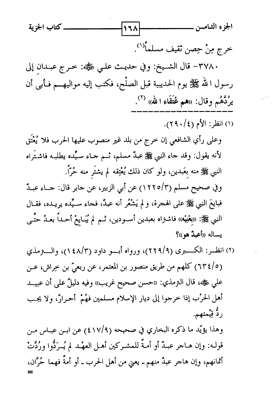 3780 - قال الشيخ : وفي حديث علي رضي الله عنه : خرج عبدان إلى رسول الله صلى الله عليه وسلم يوم الحديبية قبل الصلح ، فكتب إليه مواليهم فأبى أن يردهم وقال : ' هم عتقاء الله ' ( 2 ) .