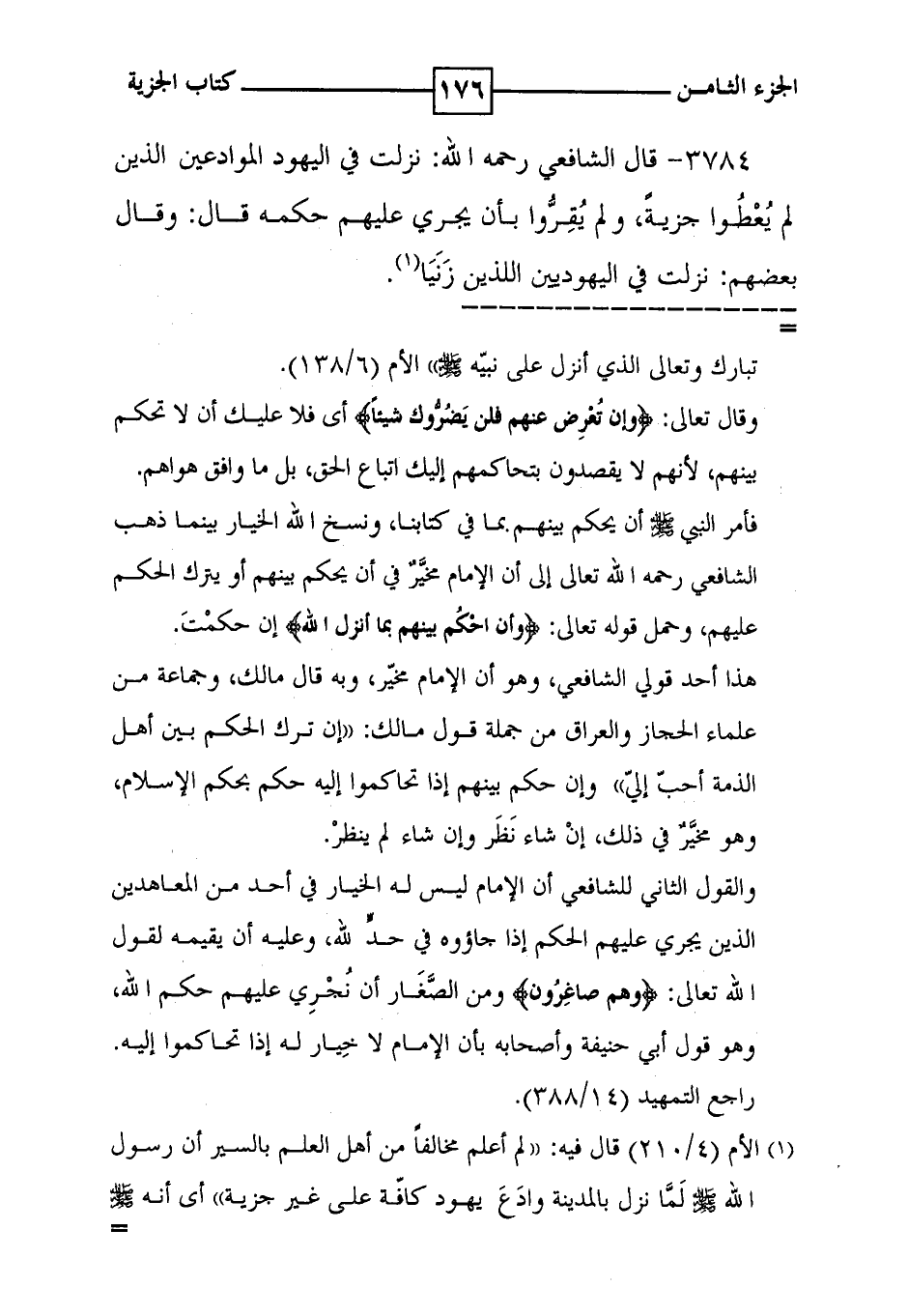 3784 - قال الشافعي رحمه الله : نزلت في اليهود الموادعين الذين لم يعطوا جزية ، ولم يقروا بأن يجري عليهم حكمه قال : وقال بعضهم : نزلت في اليهوديين اللذين زنيا ( 1 ) .