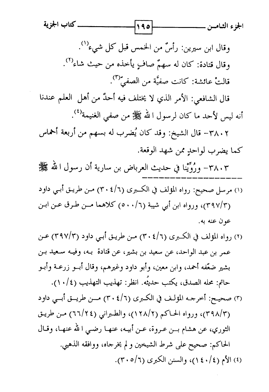 3802 - قال الشيخ : وقد كان يضرب له بسهم من أربعة أخماس كما يضرب لواحد ممن شهد الوقعة .