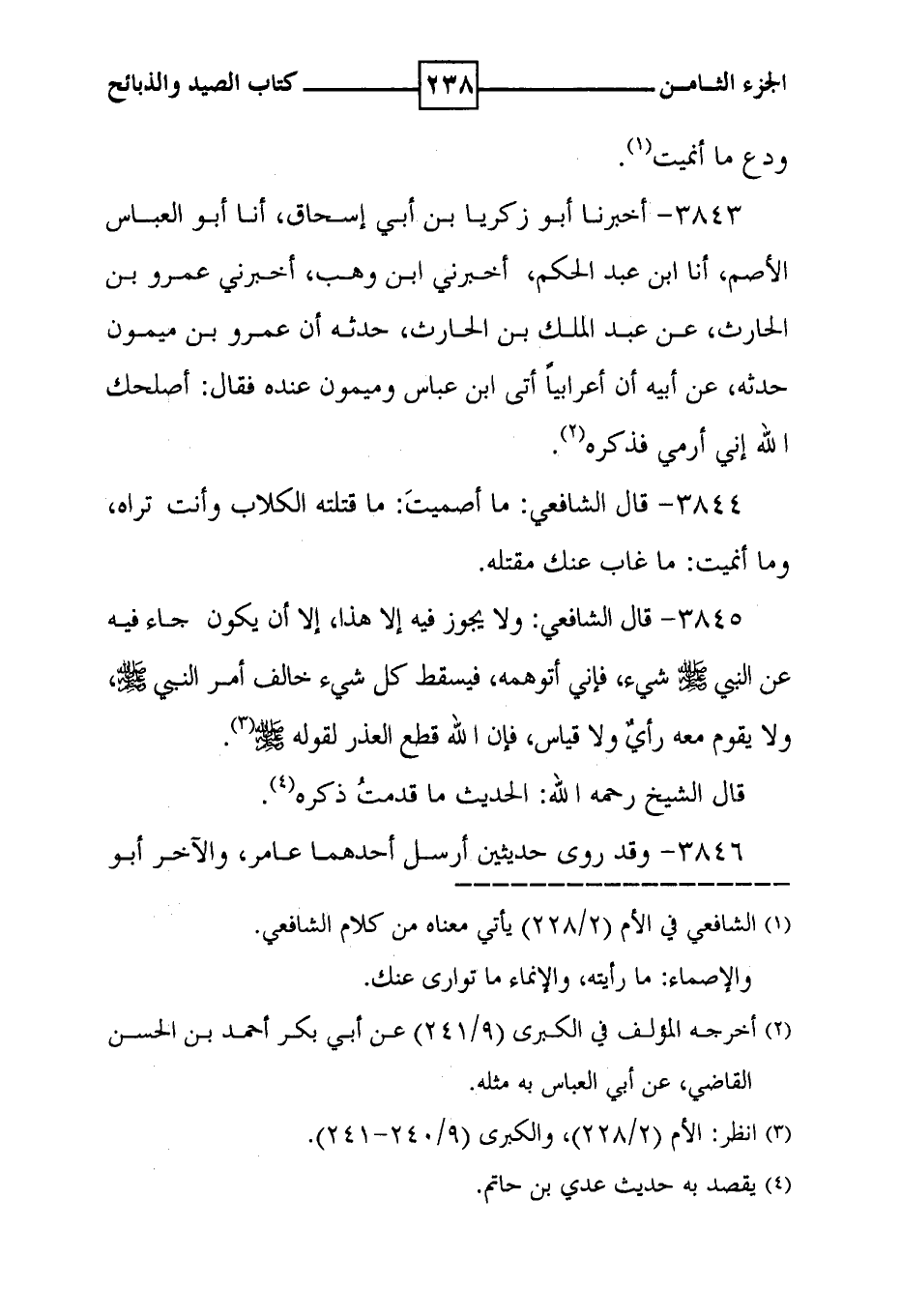 3845 - قال الشافعي : ولا يجوز فيه إلا هذا ، إلا أن يكون جاء فيه عن النبي صلى الله عليه وسلم شيء ، فإني أتوهمه ، فيسقط كل شيء خالف أمر النبي صلى الله عليه وسلم ولا يقوم معه رأي ولا قياس ، فإن الله قطع العذر لقوله صلى الله عليه وسلم ( 3 ) . قال الشيخ رحمه الله : الحديث ما قدمت ذكره ( 4 ) .