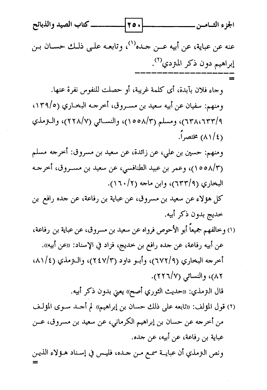 عنه عن عباية ، عن أبيه عن جده ( 1 ) ، وتابعه على ذلك حسان بن إبراهيم دون ذكر المتردي ( 2 ) .