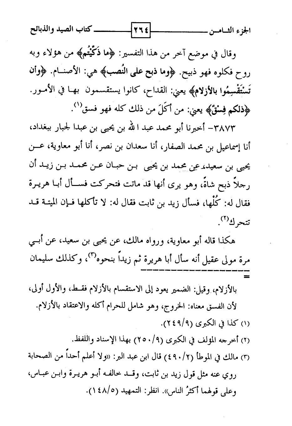3873 - أخبرنا أبو محمد عبد الله بن يحيى بن عبد الجبار ببغداد ، أنا إسماعيل بن محمد الصفار ، أنا سعدان بن نصر ، أنا أبو معاوية ، عن يحيى بن سعيد ، عن محمد بن يحيى بن حبان عن محمد بن زيد أن رجلاً ذبح شاة ، وهو يرى أنها قد ماتت فتحركت فسأل أبا هريرة فقال له : كلها ، فسأل زيد بن ثابت فقال له : لا تأكلها فإن الميتة قد تتحرك ( 2 ) . هكذا قاله أبو معاوية ، ورواه مالك ، عن يحيى بن سعيد ، عن أبي مرة مولى عقيل أنه سأل أبا هريرة ثم زيداً بنحوه ، وكذلك سليمان