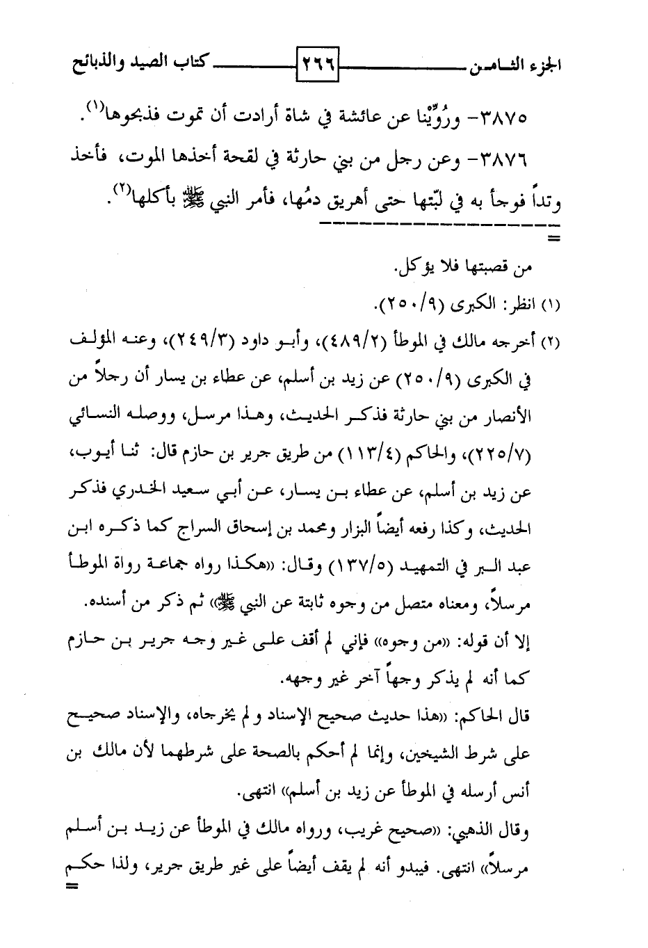 3875 - وروينا عن عائشة في شاة أرادت أن تموت فذبحوها ( 1 ) .