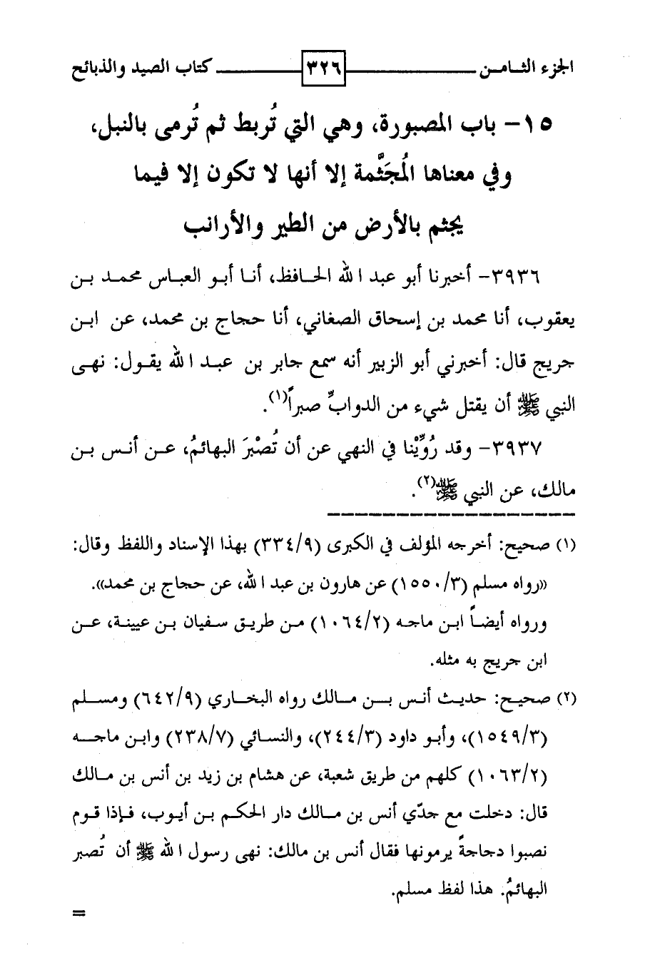 3937 - وقد روينا في النهي عن أن تصبر البهائم ، عن أنس بن مالك ، عن النبي صلى الله عليه وسلم ( 2 ) .