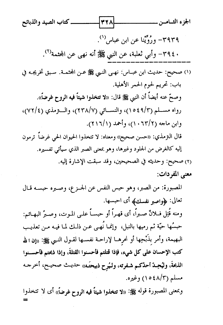 3940 - وأبي ثعلبة ، عن النبي صلى الله عليه وسلم أنه نهى عن المجثمة ( 2 ) .