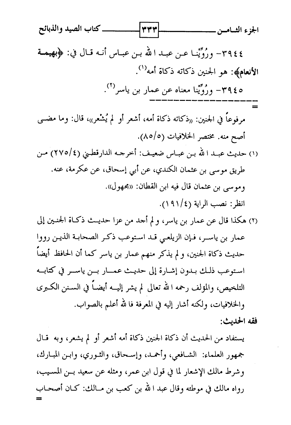 3944 - وروينا عن عبد الله بن عباس أنه قال في : ! ( بهيمة الأنعام ) ! : هو الجنين ذكاته ذكاة أمه ( 1 ) .