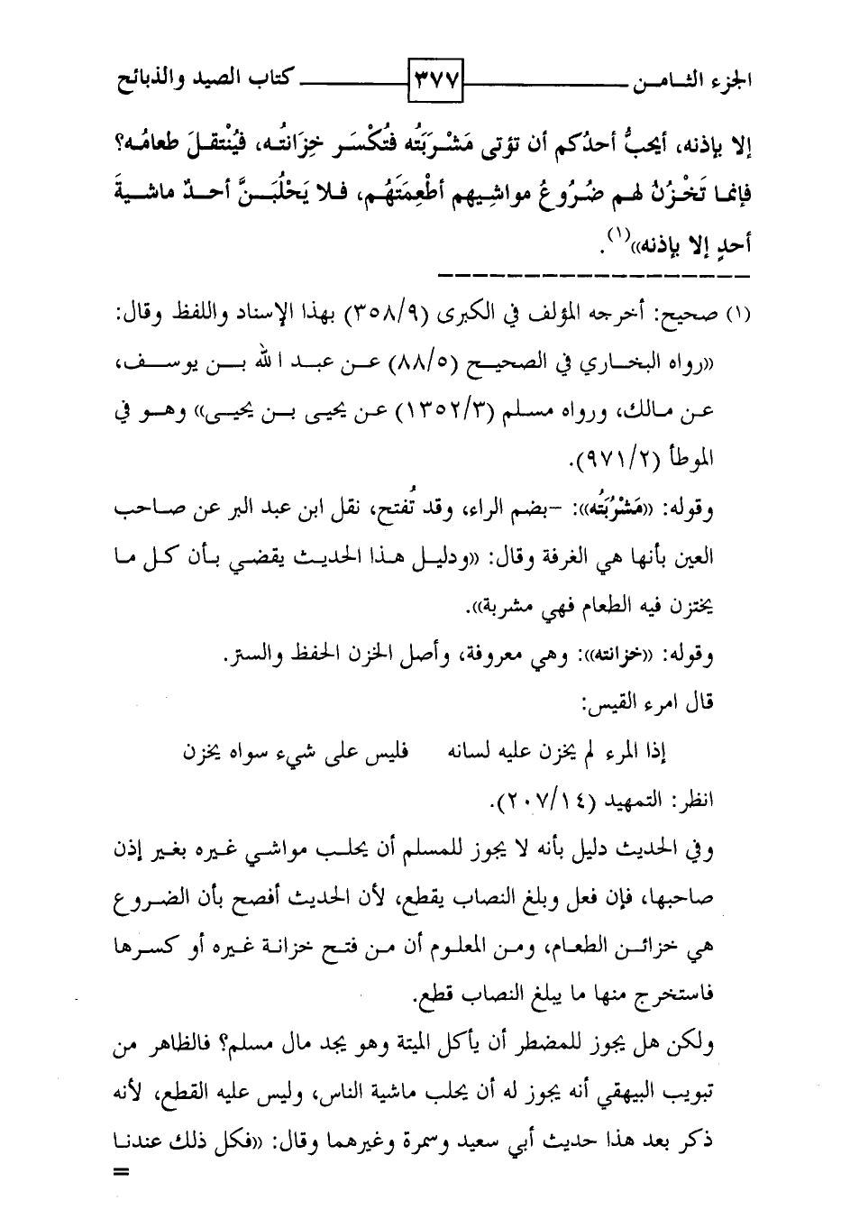 إلا بإذنه أيحب أحدكم أن تؤتى مشربته فتكسر خزانته ، فينتقل طعامه ؟ فإنما تخزن لهم ضروع مواشيهم أطعمتهم ، فلا يحلبن أحد ماشية أحد إلا بإذنه ' ( 1 ) .