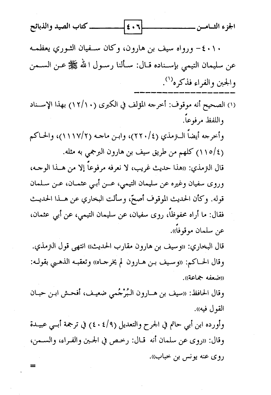 4010 - ورواه سيف بن هارون ، وكان سفيان الثوري يعظمه عن سليمان التيمي بإسناده قال : سألنا رسول الله صلى الله عليه وسلم عن السمن والجبن والفراء فذكره ( 1 ) .