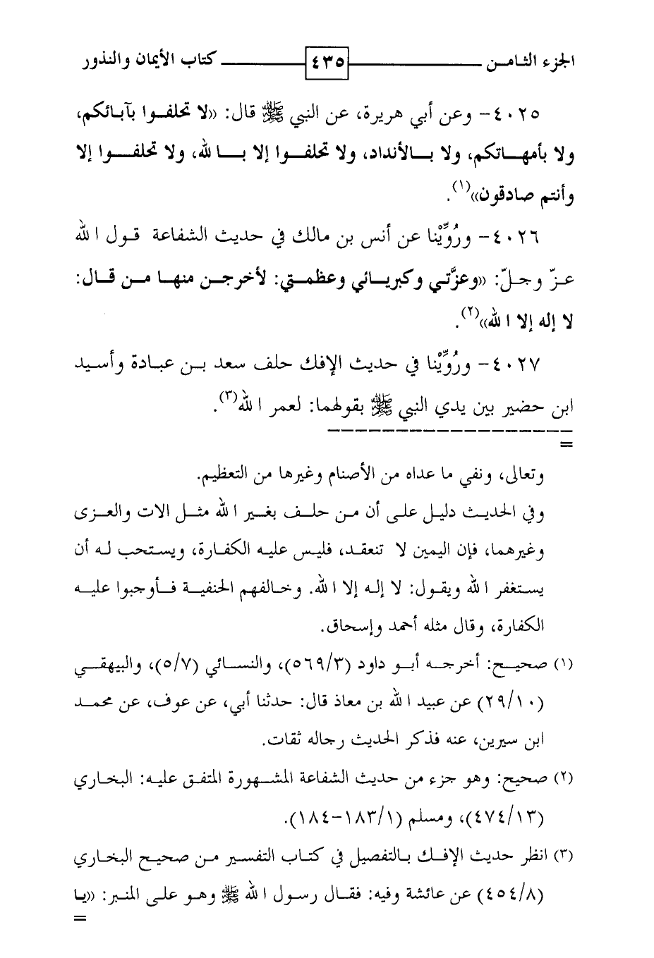 4027 - وروينا في حديث الإفك حلف سعد بن عبادة وأسيد ابن حضير بين يدي النبي صلى الله عليه وسلم بقولهما : لعمر الله ( 3 ) .