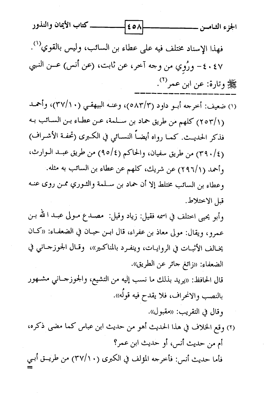 فهذا الإسناد مختلف فيه على عطاء بن السائب ، وليس بالقوي ( 1 ) .