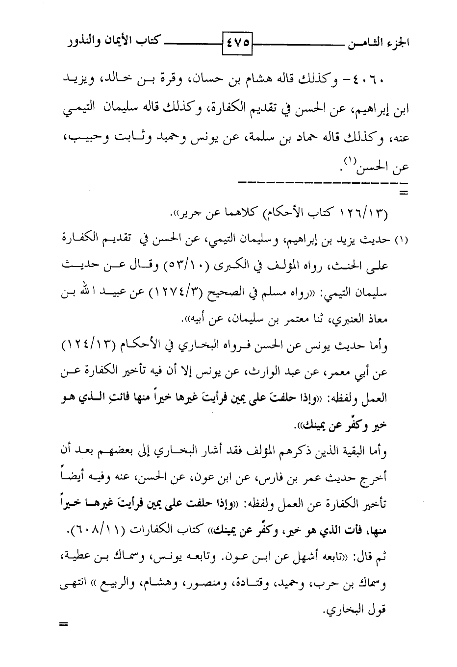 4060 - وكذلك قاله هشام بن حسان ، وقرة بن خالد ، ويزيد ابن إبراهيم ، عن الحسن في تقديم الكفارة ، وكذلك قاله سليمان التيمي عنه ، وكذلك قاله حماد بن سلمة ، عن يونس وحميد وثابت وحبيب ، عن الحسن ( 1 ) .