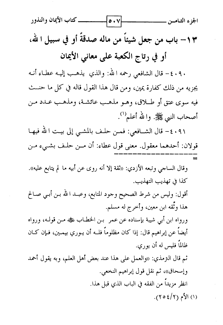 13 - باب من جعل شيئاً من ماله صدقة أو في سبيل الله ، أو في رتاج الكعبة على معاني الأيمان