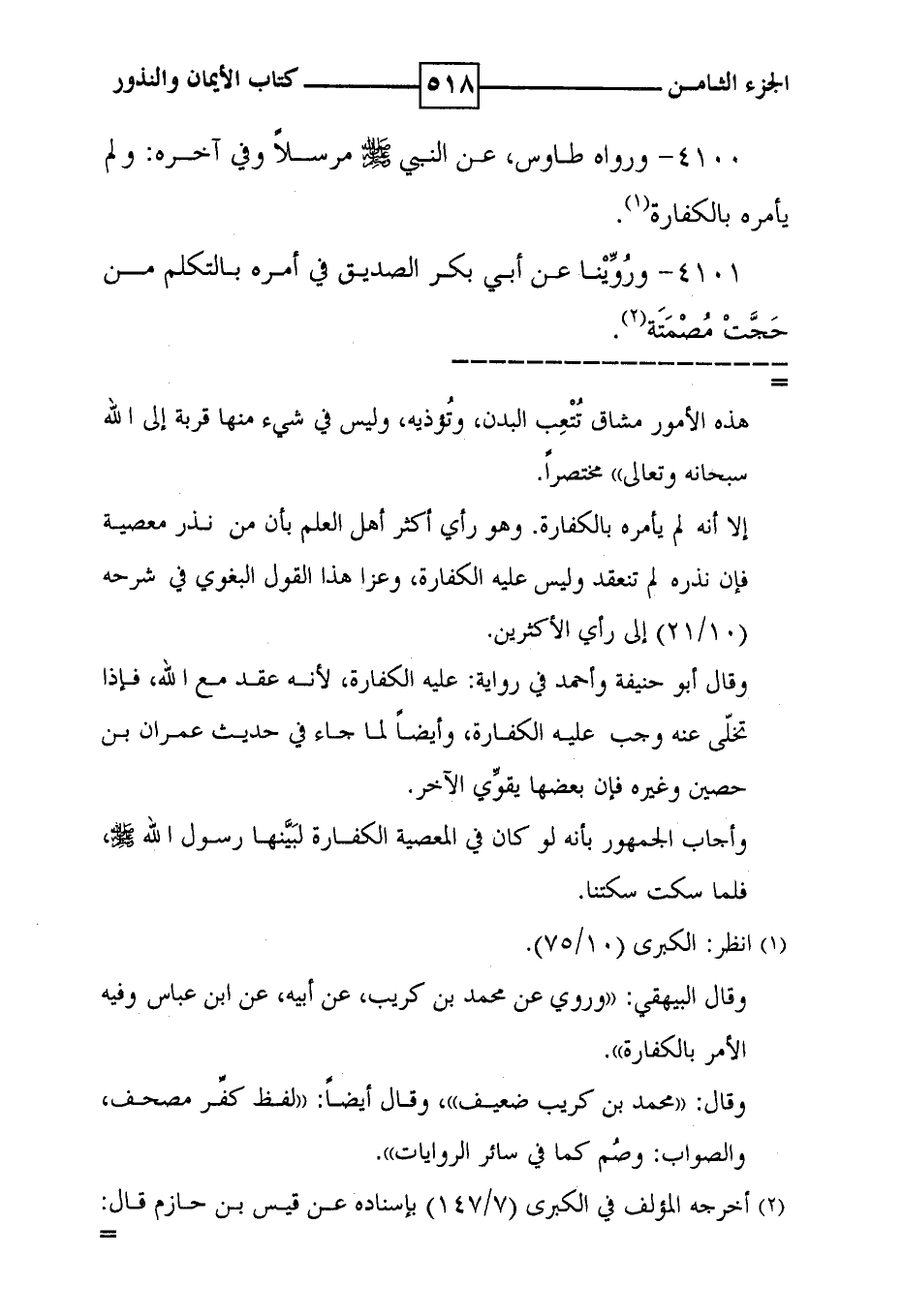 4100 - ورواه طاوس ، عن النبي صلى الله عليه وسلم مرسلاً وفي آخره : ولم يأمره بالكفارة ( 1 ) .
