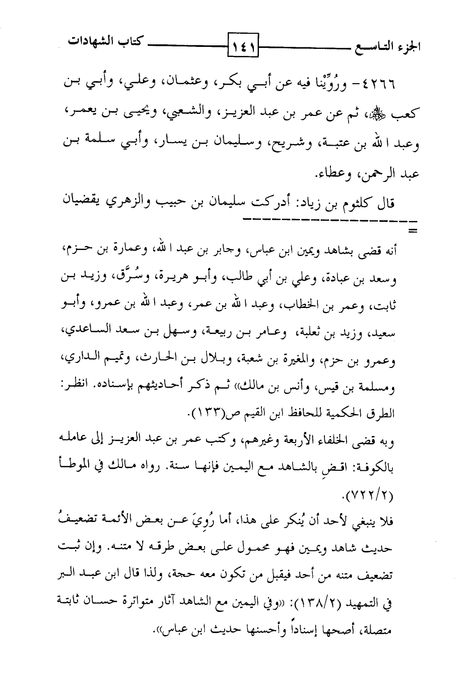 4266 - ورُوِّيْنا فيه عن أبي بكر ، وعثمان ، وعلي ، وأبي بن كعب رضي الله عنهم ، ثم عن عمر بن عبد العزيز ، والشعبي ، ويحيى بن يعمر ، وعبد الله بن عتبة ، وشريح وسليمان بن يسار ، وأبي سلمة بن عبد الرحمن وعطاء . قال كلثوم بن زياد : أدركت سليمان بن حبيب والزهري يقضيان