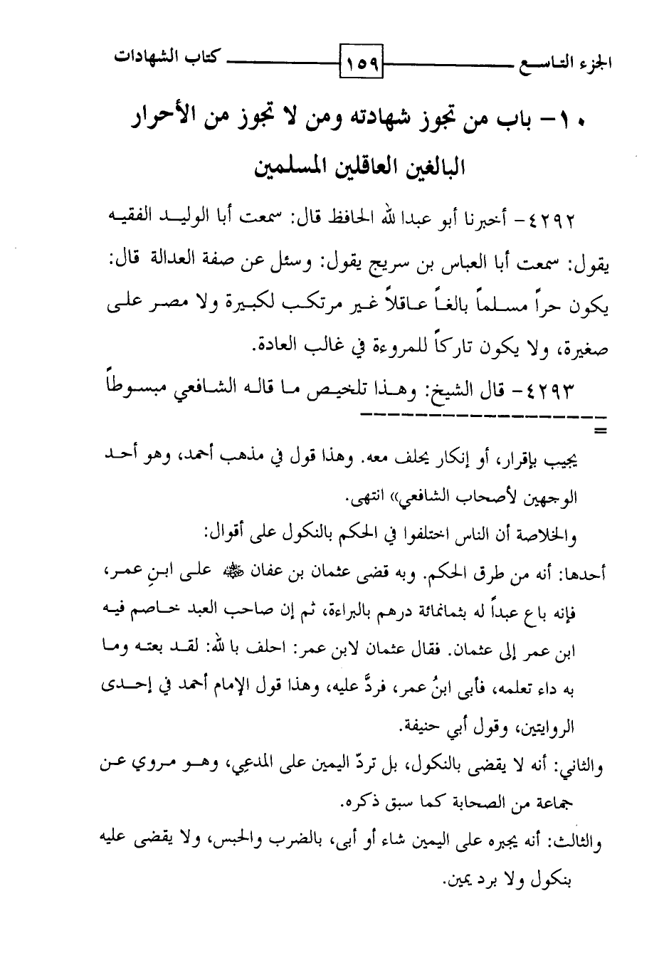 10 - باب من تجوز شهادته ومن لا تجوز من الأحرار البالغين العاقلين المسلمين