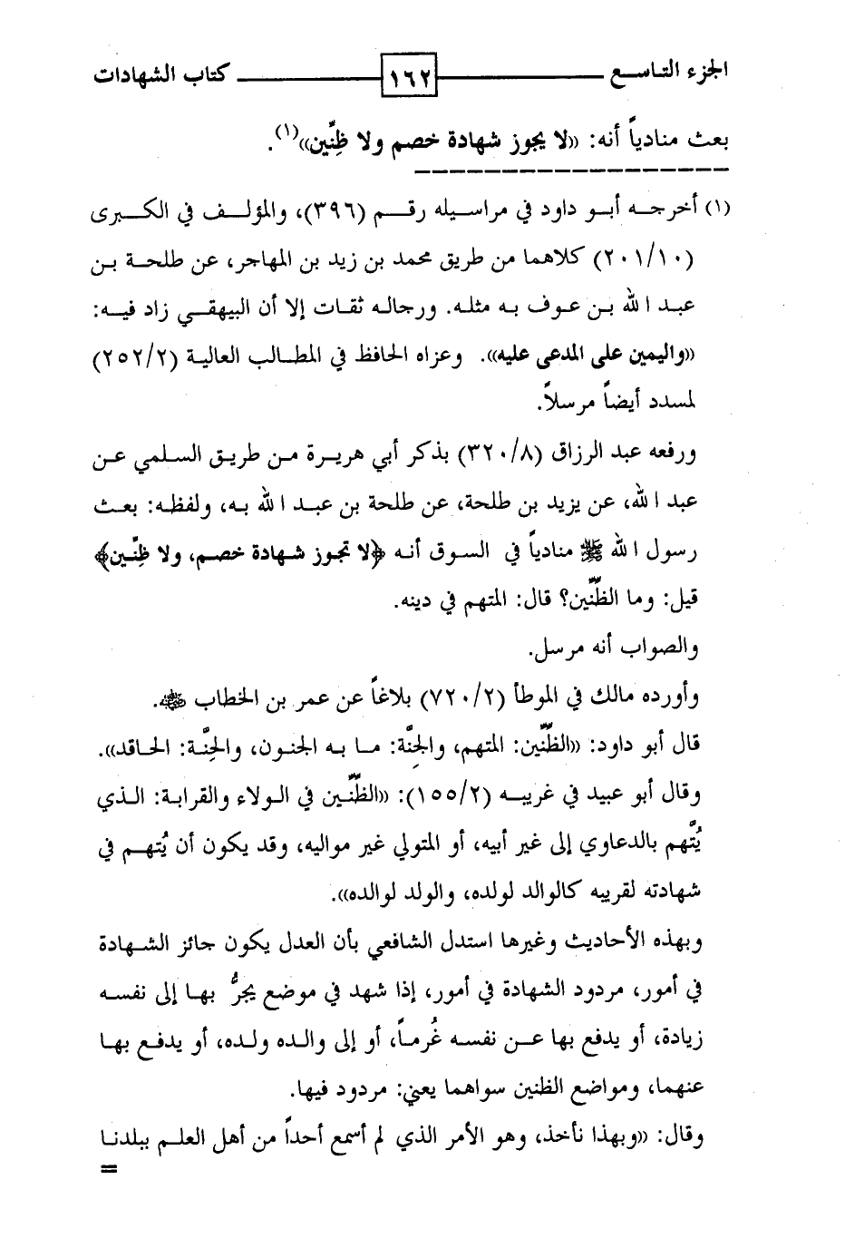 بعث منادياً أنه : ' لا يجوز شهادة خصم ولا ظِنِّين ' ( 1 ) .