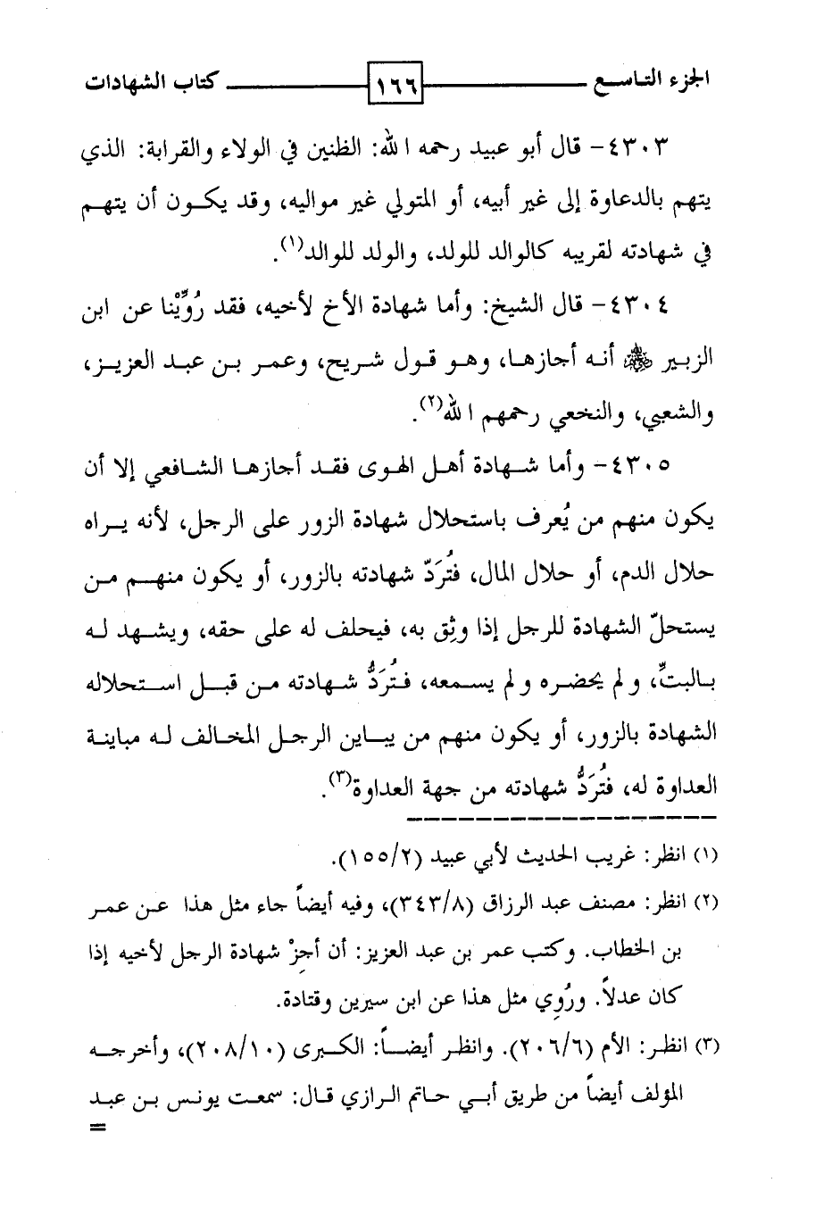 4305 - وأما شهادة أهل الهوى فقد أجازها الشافعي إلا أن يكون منهم من يُعرف باستحلال شهادة الزور على الرجل ، لأنه يراه حلال الدم ، أو حلال المال ، فتُرَدّ شهادته بالزور ، أو يكون منهم من يستحلّ الشهادة للرجل إذا وثِق به ، فيحلف له على حقه ، ويشهد له بالبتِّ ، ولم يحضره ولم يسمعه ، فتُرَدُّ شهادته من قبل استحلاله الشهادة بالزور ، أو يكون منهم من يباين الرجل المخالف له مباينة العداوة له ، فتُرَدُّ شهادته من جهة العداوة ( 3 ) .