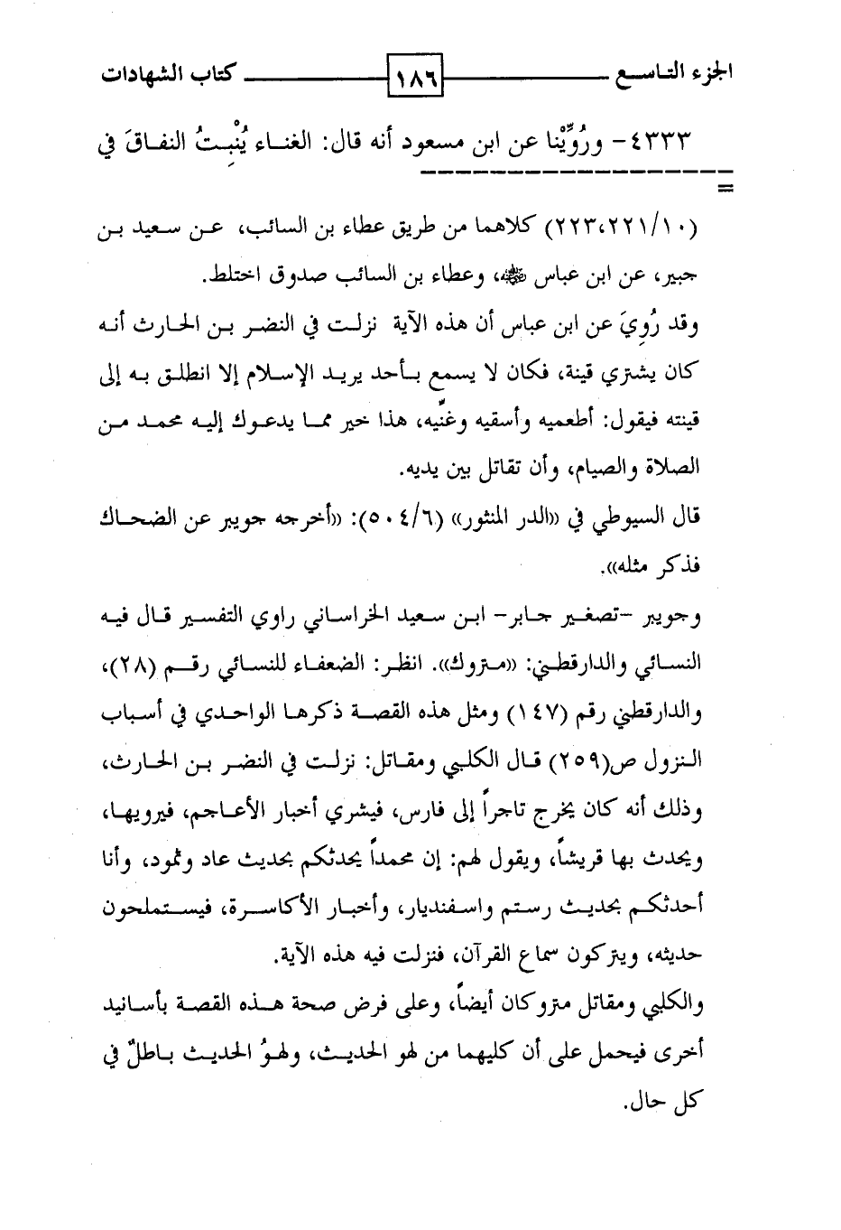 4333 - ورُوِّيْنا عن ابن مسعود أنه قال : الغناء يُنْبِتُ النفاقَ في