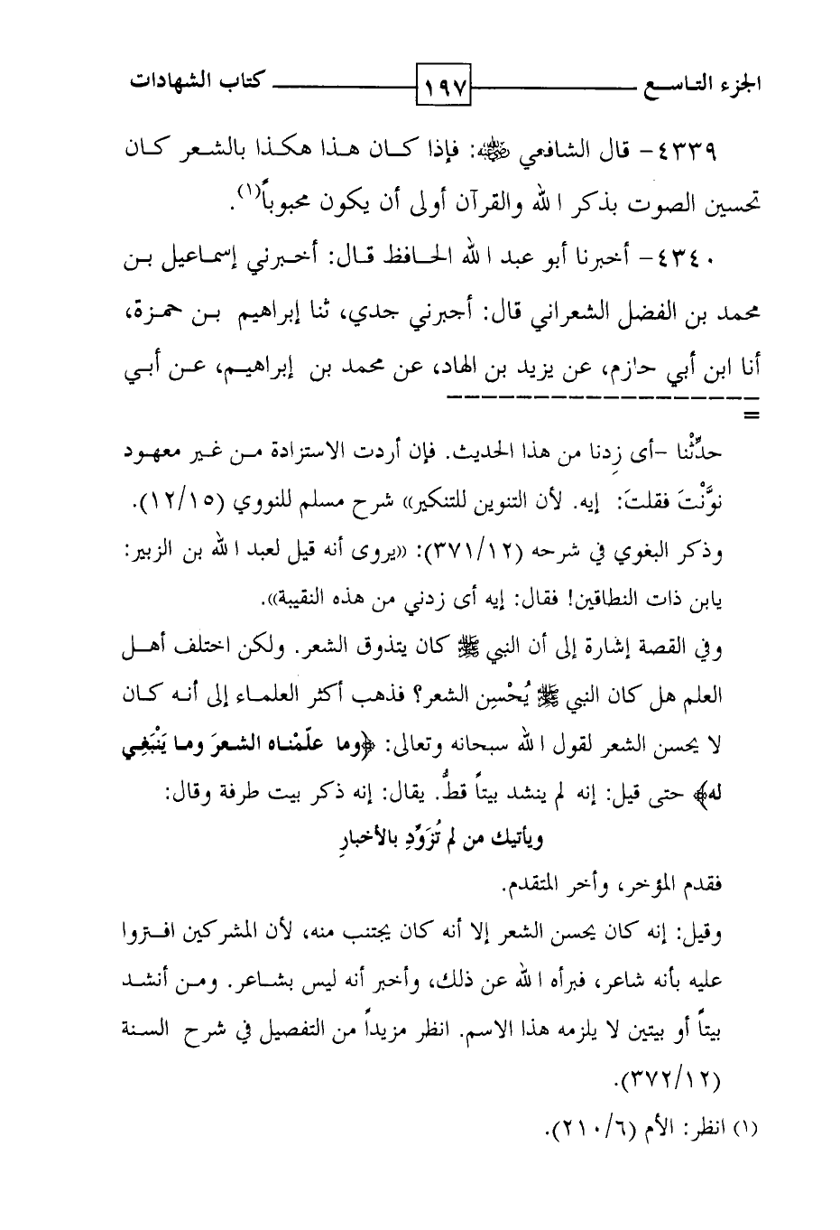 4339 - قال الشافعي رضي الله عنه : فإذا كان هذا هكذا بالشعر كان تحسين الصوت بذكر الله والقرآن أولى أن يكون محبوباً ( 1 ) .