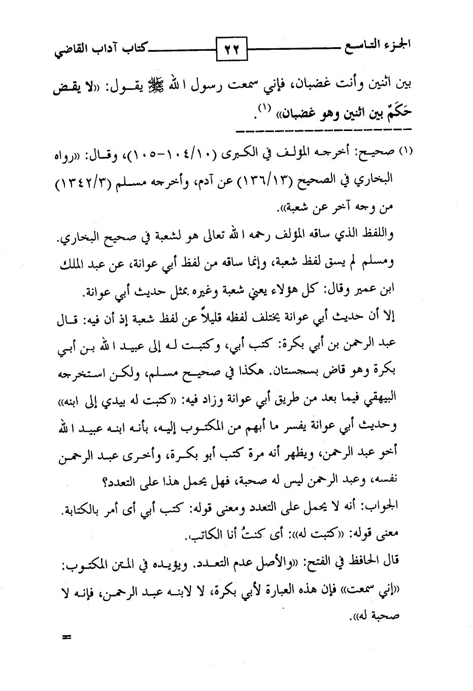 بين اثنين وأنت غضبان ، فإني سمعت رسول الله يقول : ' لا يقض حَكَمٌ بين اثنين وهو غضبان ' ( 1 ) .