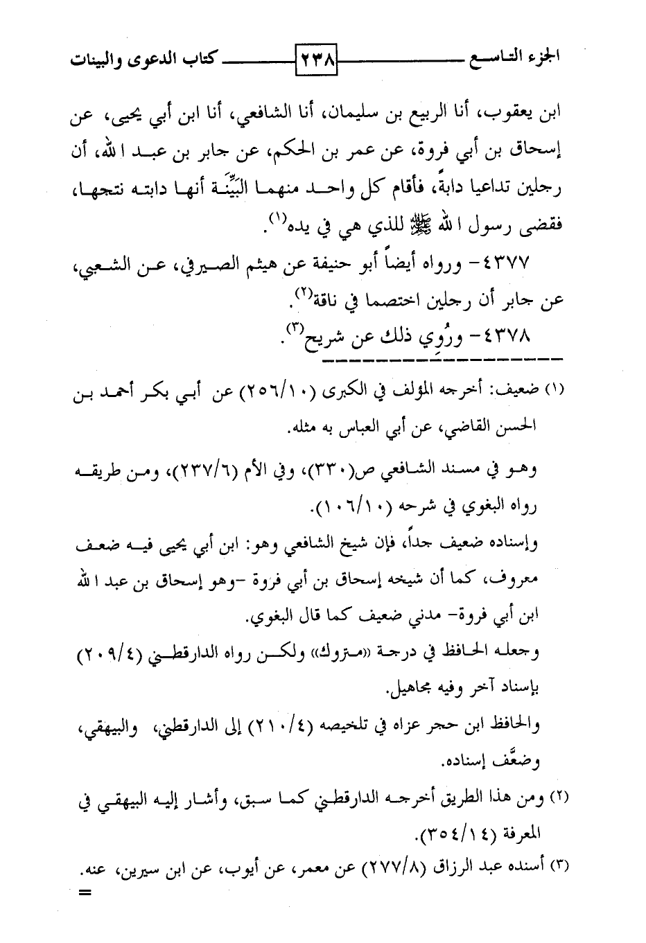 4377 - ورواه أيضاً أبو حنيفة عن هيثم الصيرفي ، عن الشعبي ، عن جابر أن رجلين اختصما في ناقة ( 2 ) .