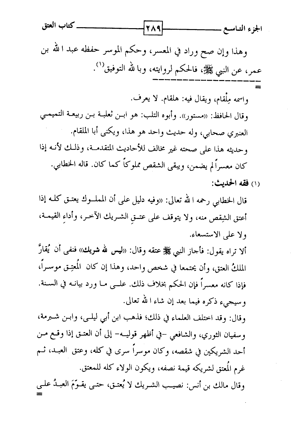 وهذا وإن صح وارد في المعسر ، وحكم الموسر حفظه عبد الله بن عمر ، عن النبي ، فالحكم لروايته ، وبالله التوفيق ( 1 ) .