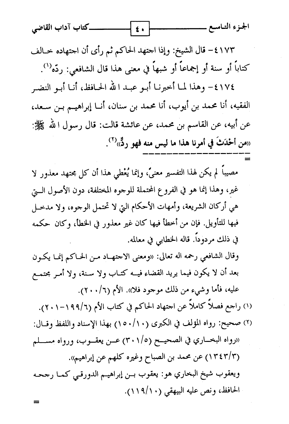 4173 - قال الشيخ : وإذا اجتهد الحاكم ثم رأى أن اجتهاده خالف كتاباً أو سنة أو إجماعاً أو شبهاً في معنى هذا قال الشافعي : ردّه ( 1 ) .