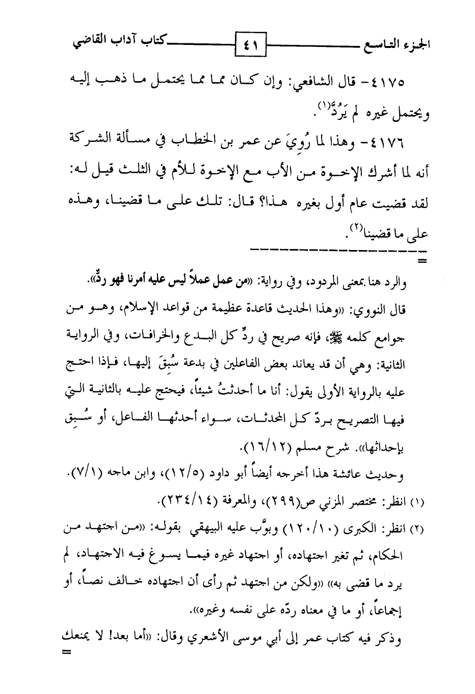 4176 - وهذا لما رُوِيّ عن عمر بن الخطاب في مسألة الشركة أنه لما أشرك الإخوة من الأب مع الإخوة للأم في الثلث قيل له : لقد قضيت عام أول بغيره هذا ؟ قال : تلك على ما قضينا ، وهذه على ما قضينا ( 2 ) .