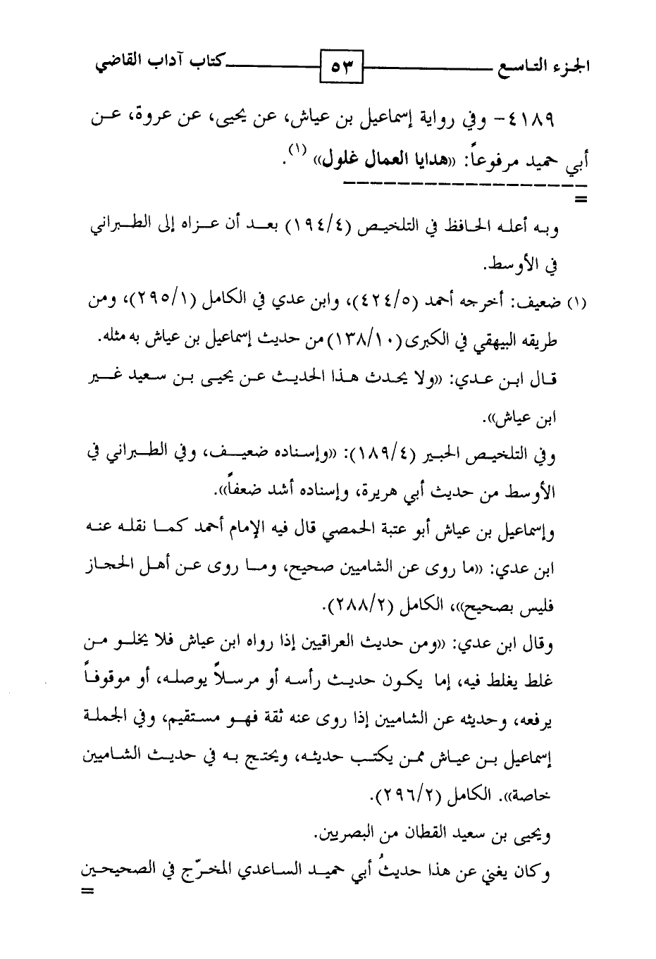 4189 - وفي رواية إسماعيل بن عياش ، عن يحيى ، عن عروة ، عن أبي حميد مرفوعاً : ' هدايا العمال غلول ' ( 1 ) .