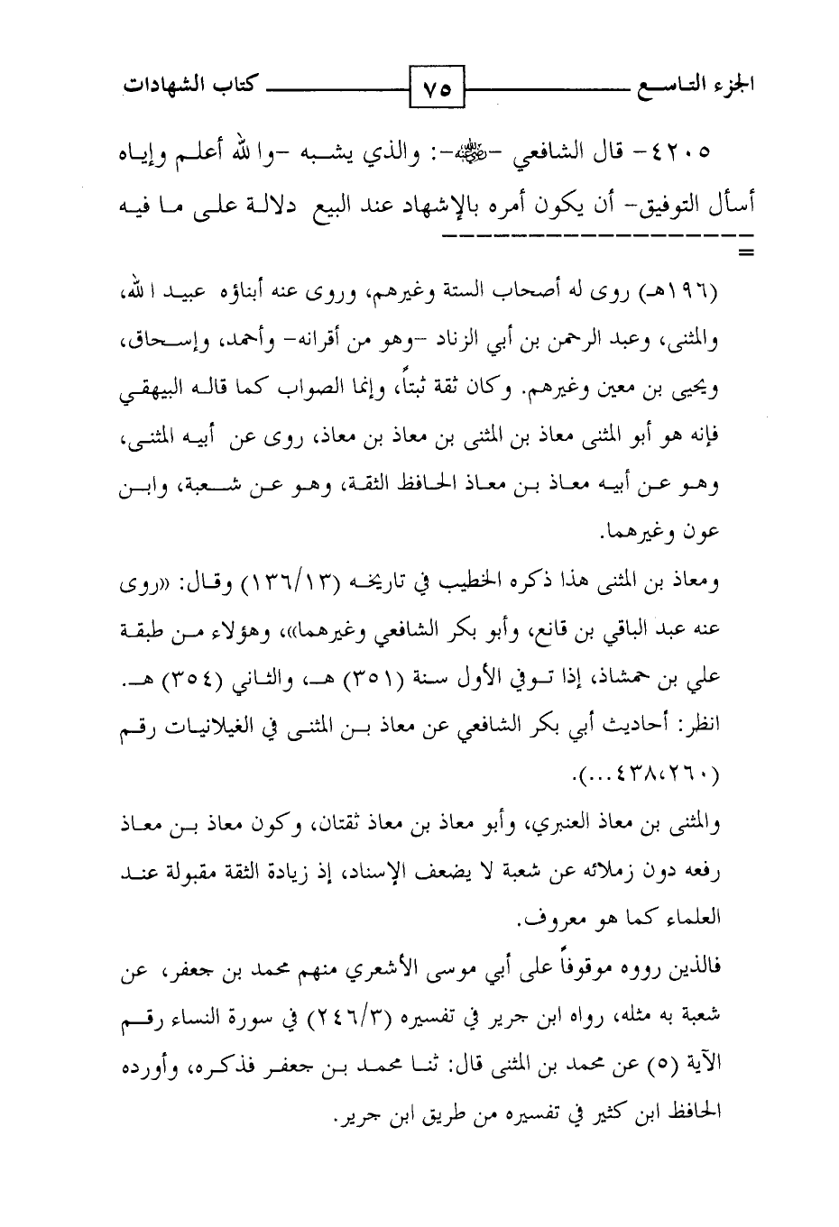 4205 - قال الشافعي - رضي الله عنه - : والذي يشبه - والله أعلم وإياه أسأل التوفيق - أن يكون أمره بالإشهاد عند البيع دلالة على ما فيه