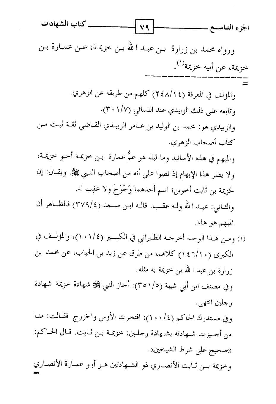 ورواه محمد بن زرارة بن عبد الله بن خزيمة ، عن عمارة بن خزيمة ، عن أبيه خزيمة ( 1 ) .