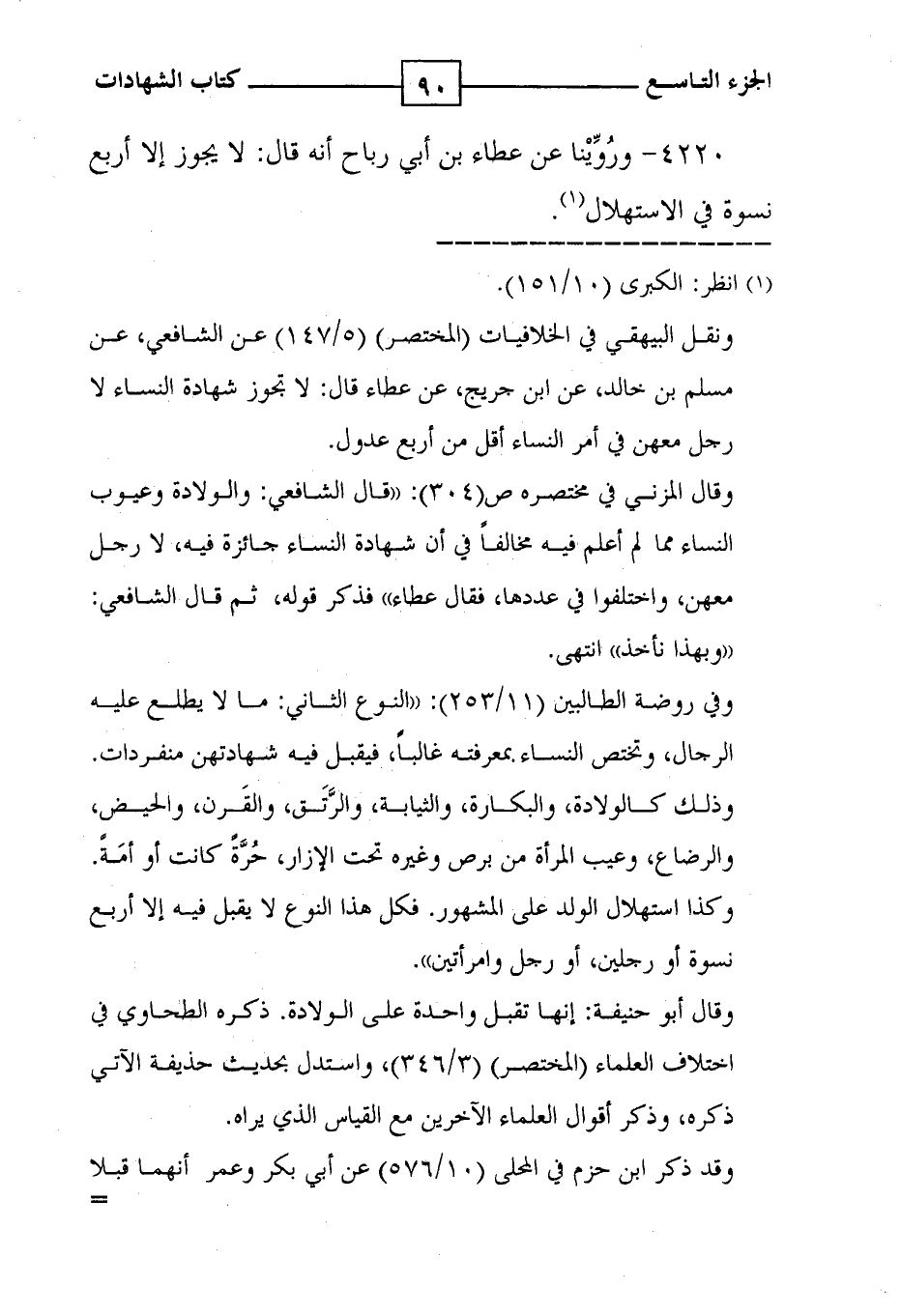 4220 - ورُوِّيْنا عن عطاء بن أبي رباح أنه قال : لا يجوز إلا أربع نسوة في الاستهلال ( 1 ) .
