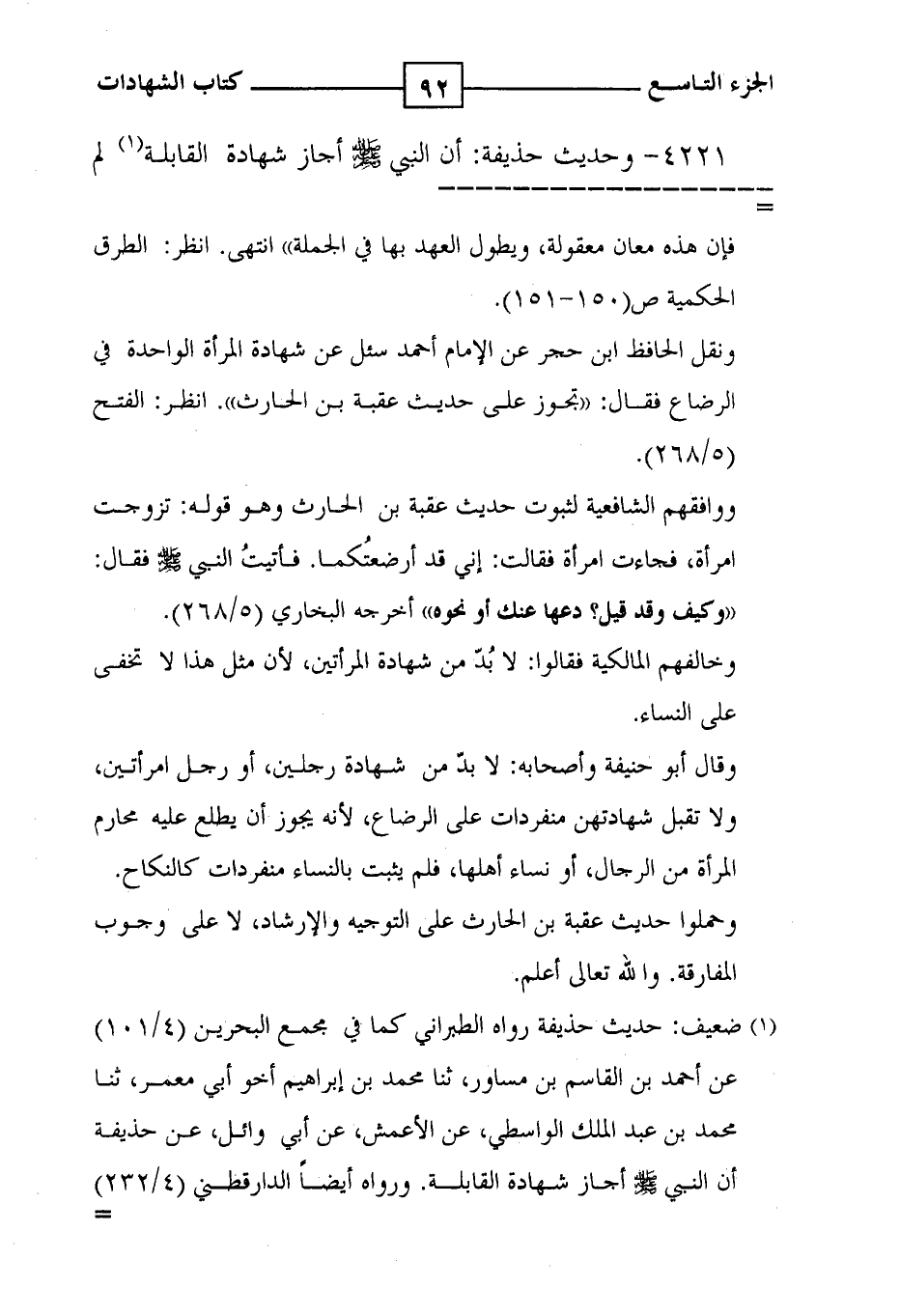 4221 - وحديث حذيفة : أن النبي أجاز شهادة القابلة ( 1 ) لم