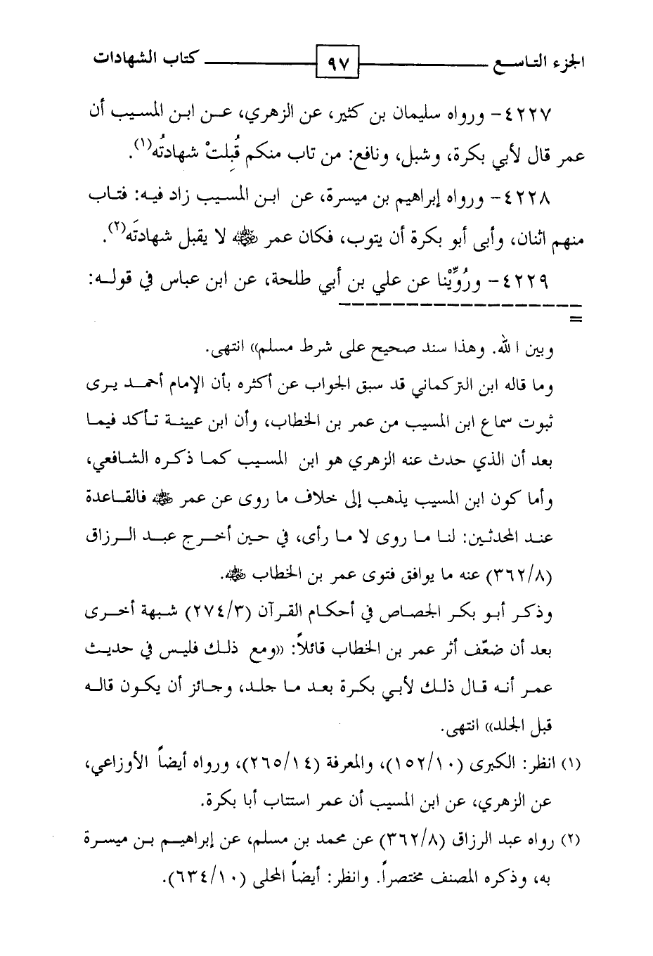 4227 - ورواه سليمان بن كثير ، عن الزهري ، عن ابن المسيب أن عمر قال لأبي بكرة ، وشبل ، ونافع : من تاب منكم قُبِلتْ شهادتُه ( 1 ) .