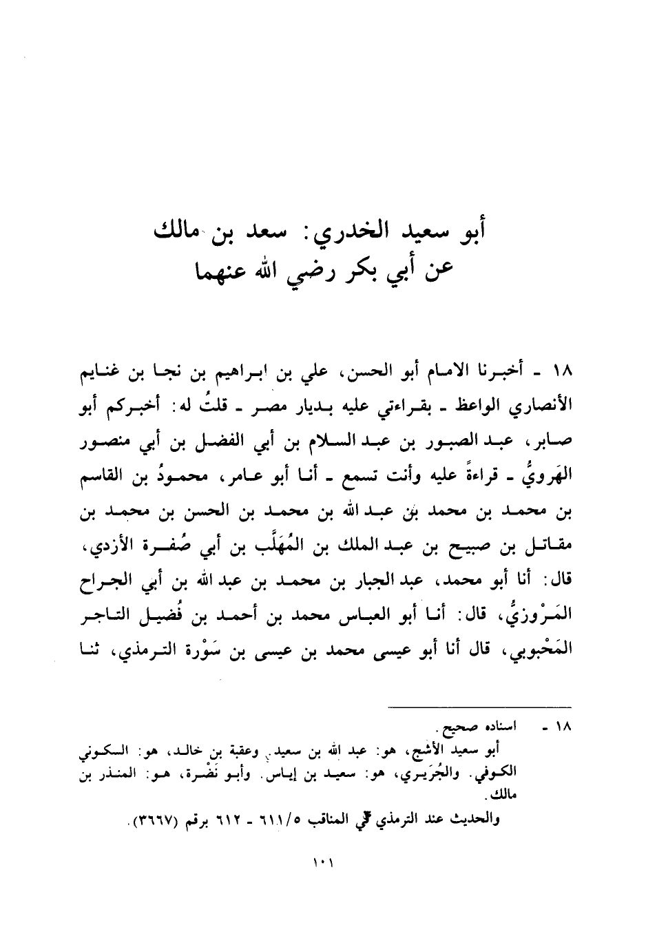 أَبُو سَعِيدٍ الْخُدْرِيُّ: سَعْدُ بْنُ مَالِكٍ عَنْ أَبِي بَكْرٍ رَضِيَ اللهُ عَنْهُمَا