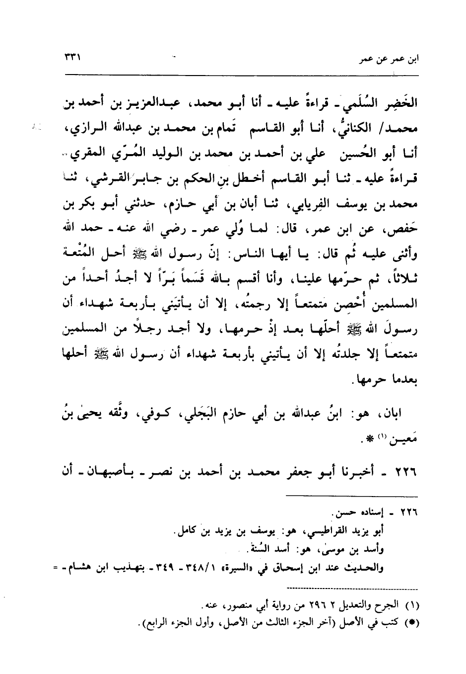 ٢٢٦ - أَخْبَرَنَا أَبُو جَعْفَرٍ مُحَمَّدُ بْنُ أَحْمَدَ بْنِ نَصْرٍ - بِأَصْبَهَانَ - أَنَّ