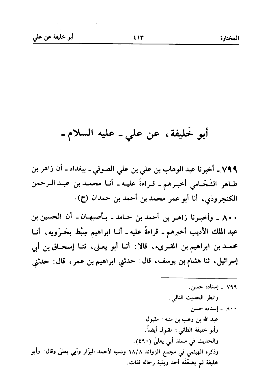 ٧٩٩ - أَخْبَرَنَا عَبْدُ الْوَهَّابِ بْنُ عَلِيِّ بْنِ عَلِيٍّ الصُّوفِيُّ - بِبَغْدَادَ - أَنَّ زَاهِرَ بْنَ طَاهِرٍ الشَّحَّامِيَّ أَخْبَرَهُمْ - قِرَاءَةً عَلَيْهِ - أَنَا مُحَمَّدُ بْنُ عَبْدِ الرَّحْمَنِ الْكَنْجَرُوذِيُّ، أَنَا أَبُو عُمَرَ مُحَمَّدُ بْنُ أَحْمَدَ بْنِ حَمْدَانَ (ح).