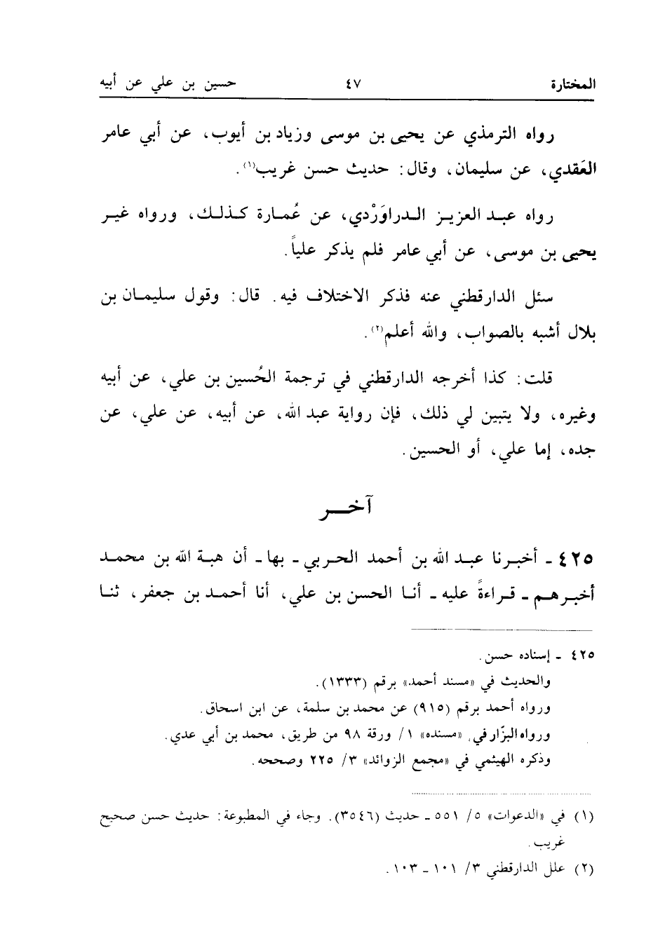 كتاب الأحاديث المختارة (اسم الجزء: 2)