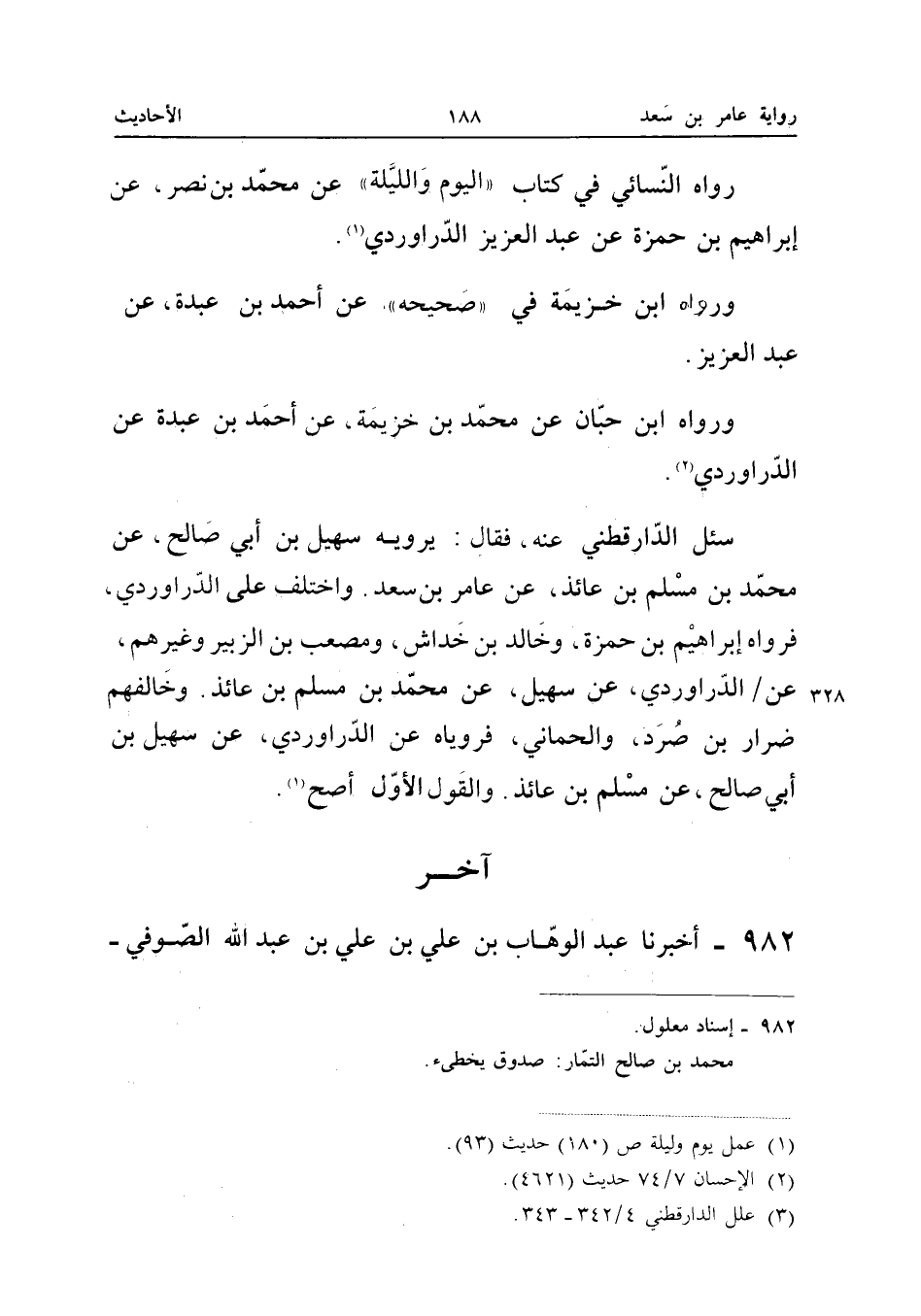 رَوَاهُ النَّسَائِيُّ، عَنْ مُحَمَّدِ بْنِ عَبْدِ اللهِ الْمُخَرِّمِيِّ، وَهَارُونَ بْنِ عَبْدِ اللهِ، عَنْ أَبِي عَامِرٍ، عَنْ مُحَمَّدِ بْنِ صَالِحٍ.