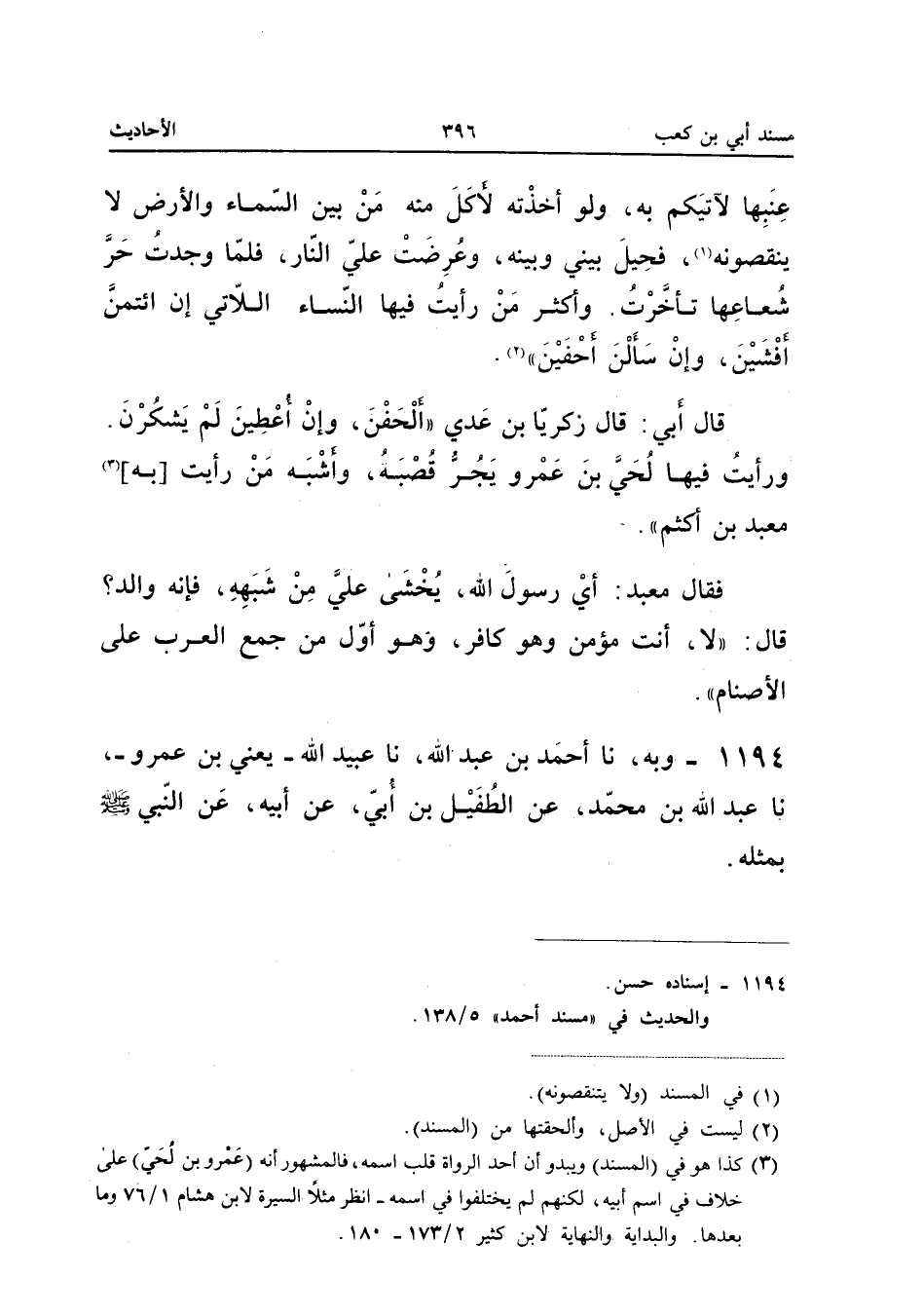 ١١٩٤ - وَبِهِ، نَا أَحْمَدُ بْنُ عَبْدِ اللهِ، نَا عُبَيْدُ اللهِ - يَعْنِي: ابْنَ عَمْرٍو -، نَا عَبْدُ اللهِ بْنُ مُحَمَّدٍ، عَنِ الطُّفَيْلِ بْنِ أُبَيٍّ، عَنْ أَبِيهِ، عَنِ النَّبِيِّ صَلَّى اللهُ عَلَيْهِ وَسَلَّمَ بِمِثْلِهِ.