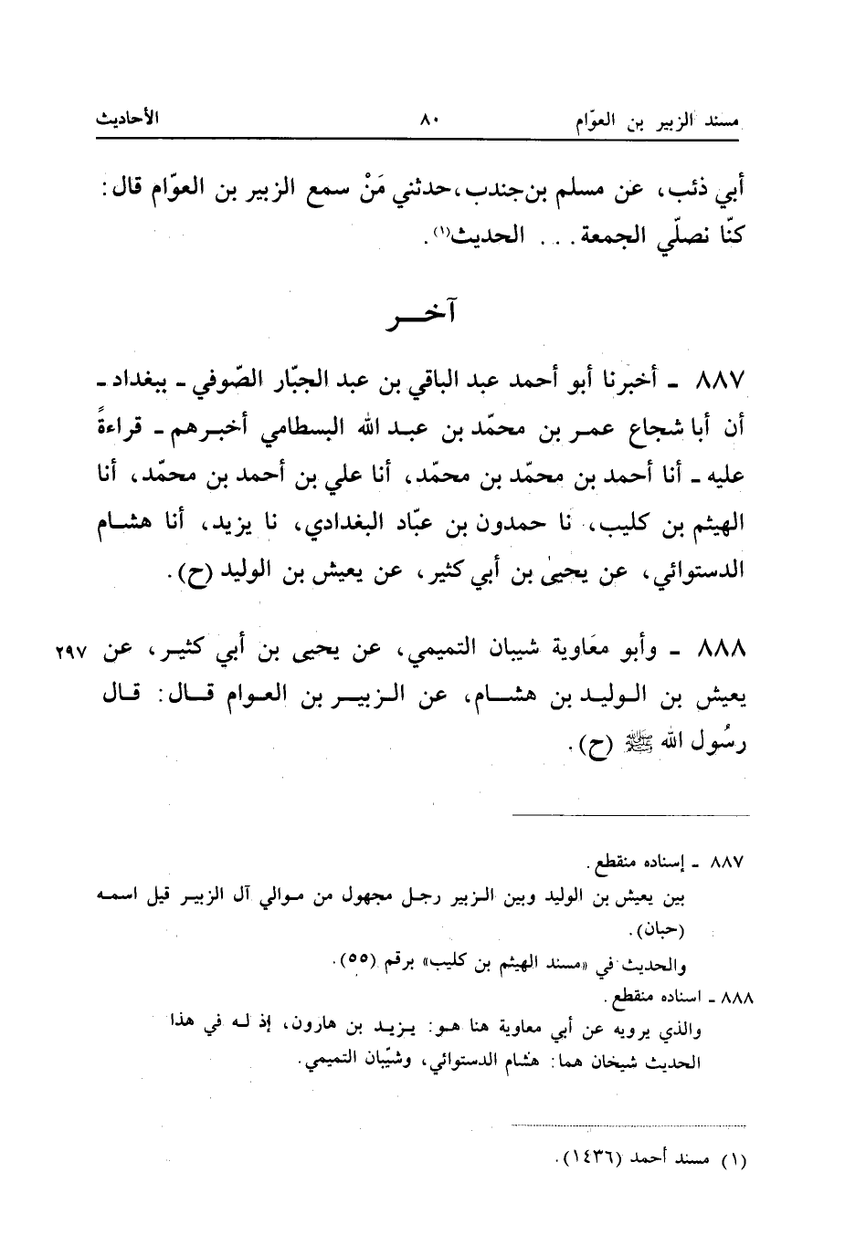٨٨٨ - وَأَبُو مُعَاوِيَةَ شَيْبَانُ التَّمِيمِيُّ، عَنْ يَحْيَى بْنِ أَبِي كَثِيرٍ، عَنْ يَعِيشَ بْنِ الْوَلِيدِ بْنِ هِشَامٍ، عَنِ الزُّبَيْرِ بْنِ الْعَوَّامِ قَالَ: قَالَ رَسُولُ اللهِ صَلَّى اللهُ عَلَيْهِ وَسَلَّمَ (ح).